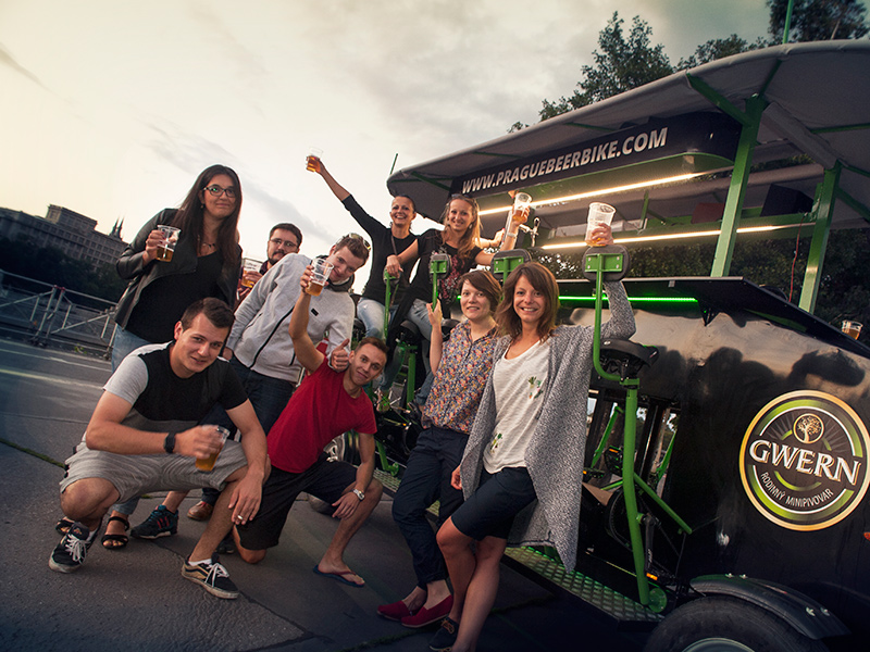 Are you planning a gathering with your former classmates, a stag night or a birthday party? Would you like to make your teambuilding event more fun? Beer Bike tours are perfect for anyone who’s fond of drinking premium Czech beer, as well as experiencing unconventional events, while having a great time with their friends and coworkers. Groups of gentlemen might also appreciate having their drinks served by a pretty barmaid whose presence can be arranged for extra cost. With us, your event will turn into an adventurous sightseeing experience full of joy, no matter the occasion.